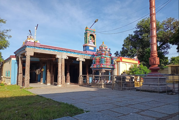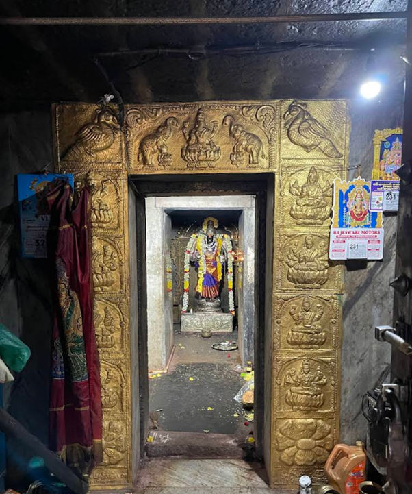 ஆலயத்துள் நுழைந்ததும் வலதுபுறத்தில் அம்பாள் சந்நதி, தெற்கு நோக்கி அமைந்துள்ளது. அன்னை தன் மேலிருகரங்களில் பாசாங்குசத்தைக் கொண்டிருக்கிறாள். கீழிரு கரங்களில் அபய வரத முத்திரைக் காட்டி அருள் காட்சித் தருகின்றாள். அம்பாளின் திருமுன் சிம்மமும், பலிபீடமும், கொடிமரமும் காணப்படுகின்றன.